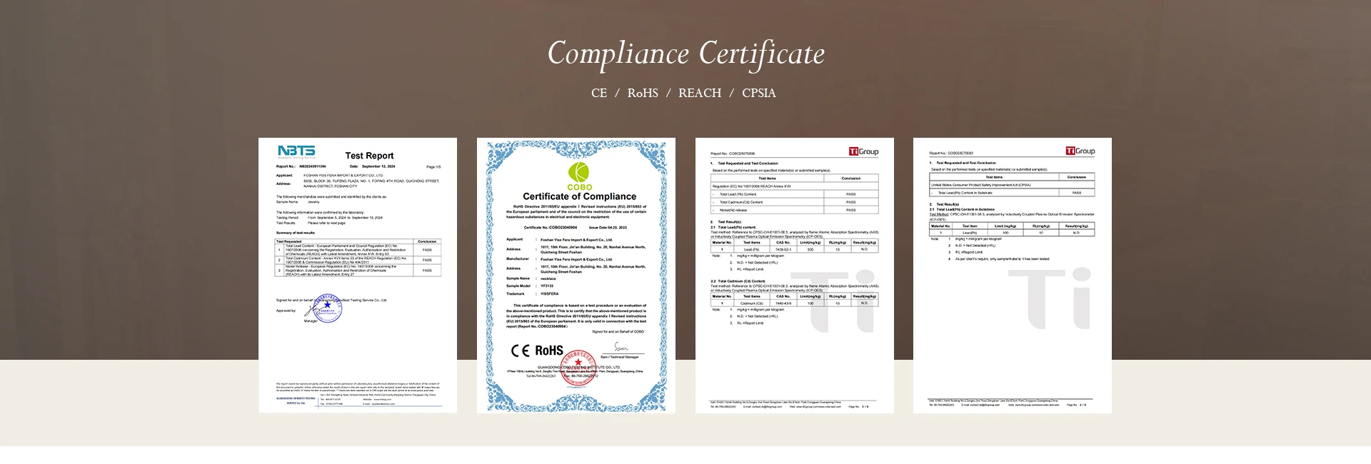 Foshan Yiss Fera Import & Export Co., Ltd. is a comprehensive company integrating development, design, production and sales, located in Guangdong China. Our products including rings, earrings, bracelets, necklaces, anklets. We focus on waterproof and non tarnish stainless steel products, and gradually expand to brass and sterling silver, providing customers with more material choices.